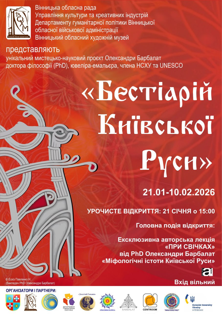 персональна виставка Олександри Барбалат З 12 по 17 січня 2026 року в Центрі культури міста Криниця-Здруй (Республіка Польща) відбулася знакова культурна подія — персональна виставка відомого ювеліра-емальєра Олександри Барбалат. Олександра Барбалат — доктор філософії (PhD), доцент кафедри декоративного мистецтва КДІДМ, Кавалер Ордена Карла Фаберже та член НСХУ та Міжнародної асоціації образотворчих мистецтв (IAA/AIAP) при ЮНЕСКО.