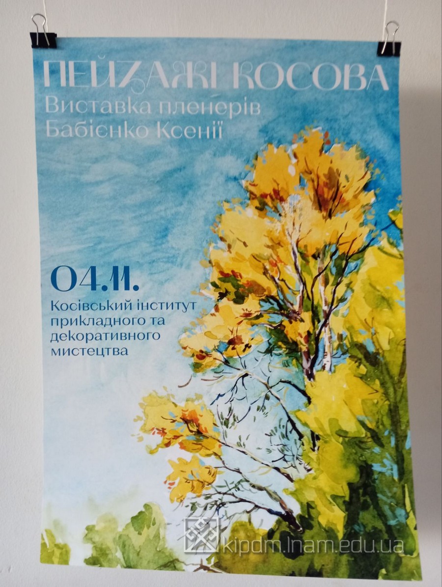 04 лист.,2024 НОВИНИ COMMENTS Перегляди: 343 Tags: ВИСТАВКА, БАКАЛАВР, ДМ Виставка студентки першого курсу Бабієнко Ксенії Пейзажі Косов Детальніше