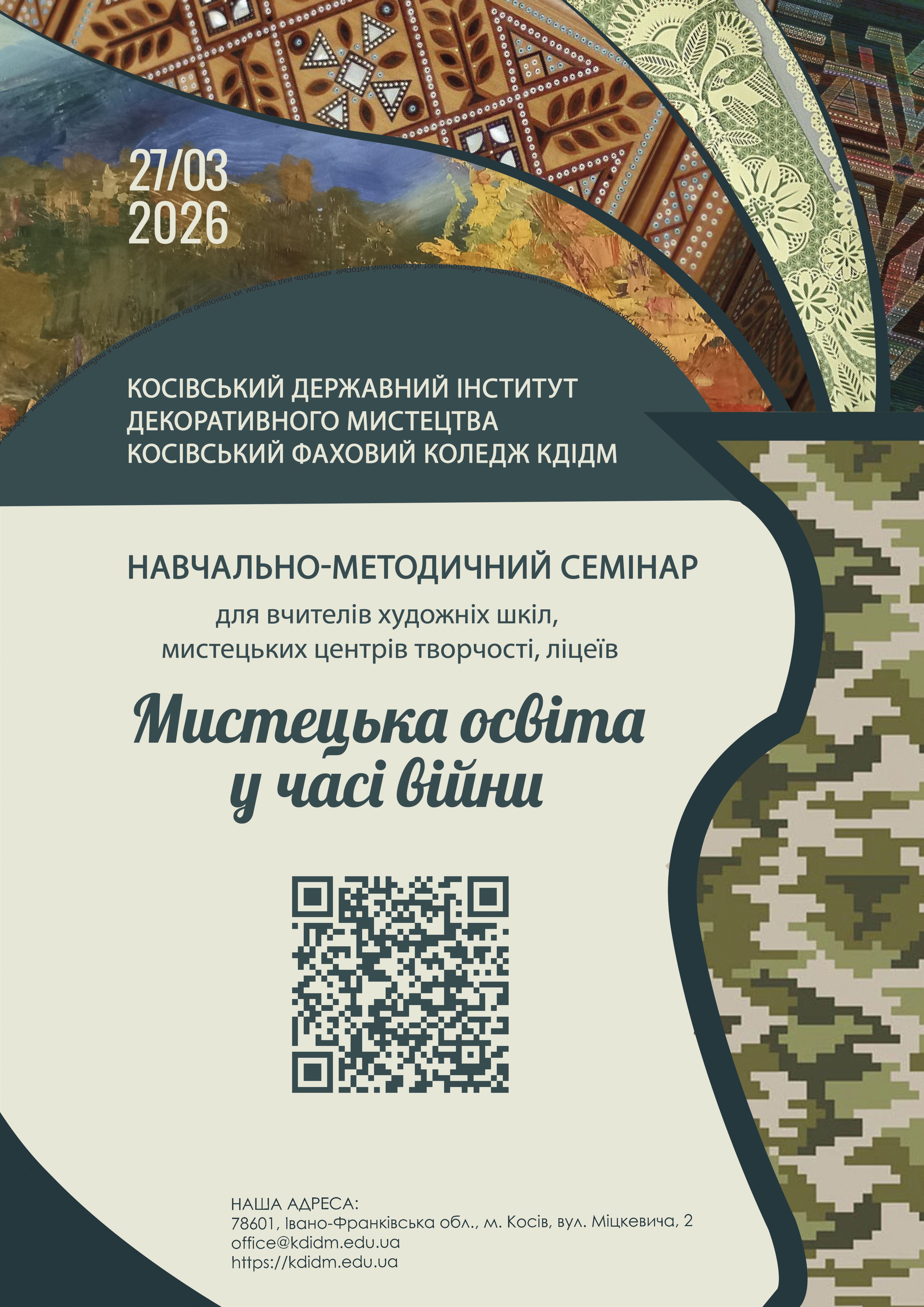 Навчально-методичний семінар "Мистецька освіта у часі війни" для вчителів художніх шкіл, мистецьких центрів творчості, ліцеїв.