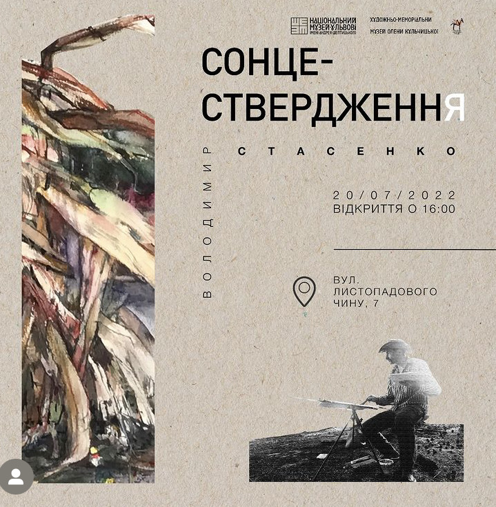- Персональна виставка акварельного живопису «Сонцествердження». Художньо-меморіальний музей Олени Кульчицької, Національний музей ім. Андрея Шептицького у Львові. Липень-серпень 2022.