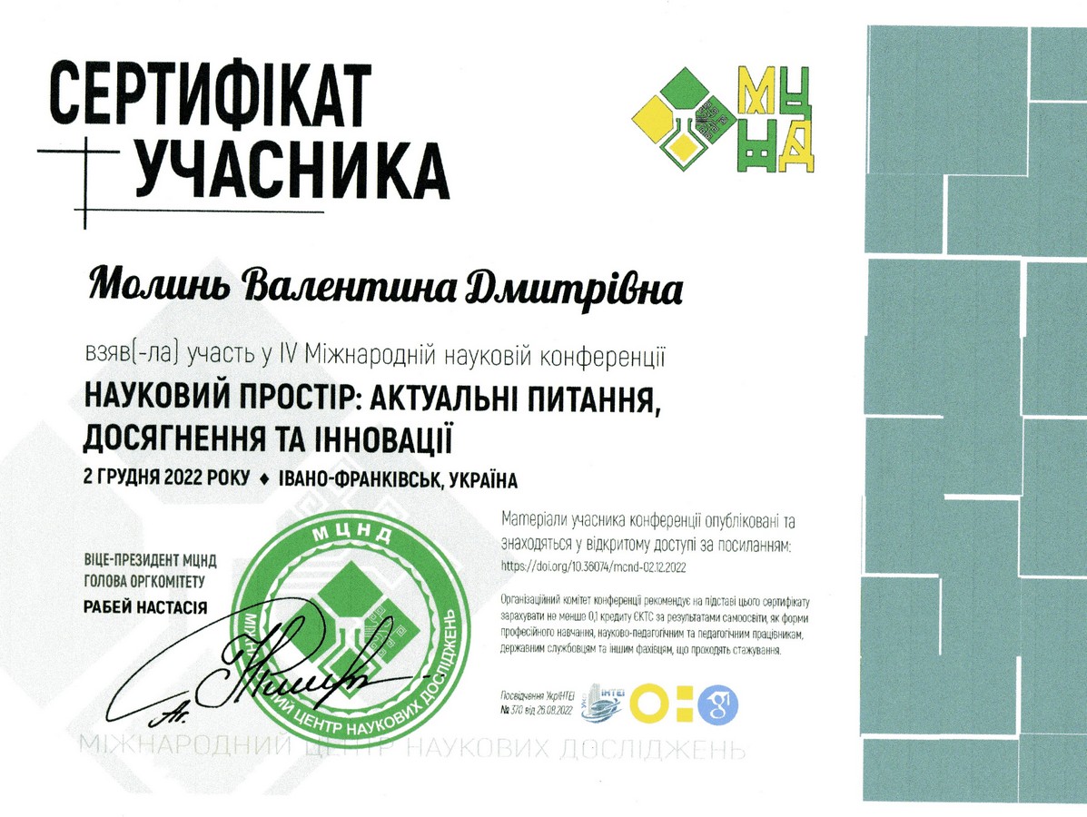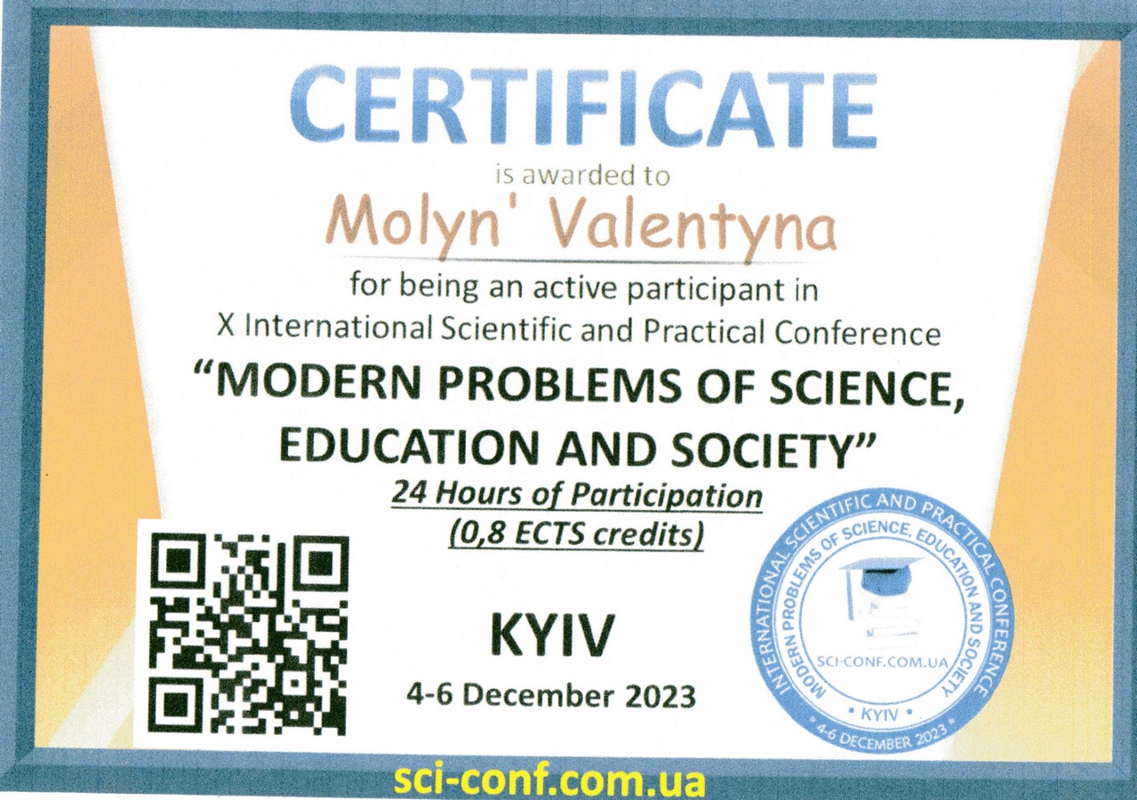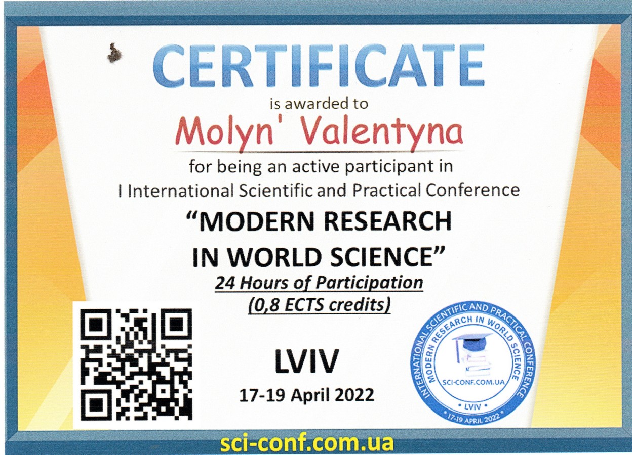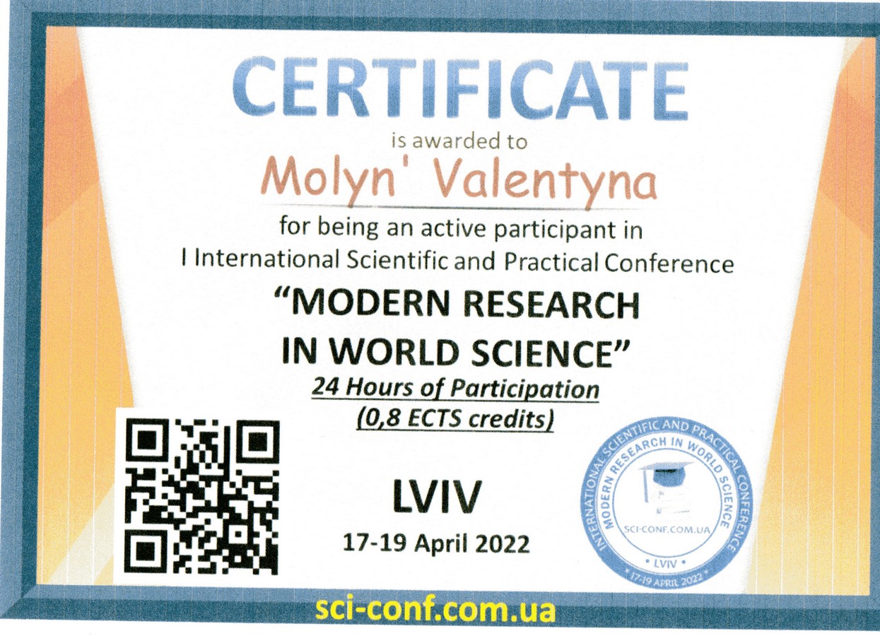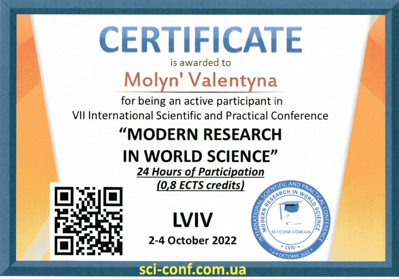 VII Міжнародна науково-практична конференція “MODERN RESEARCH IN WORLD SCIENCE”, 2-4.10.2022 Львів, Україна.