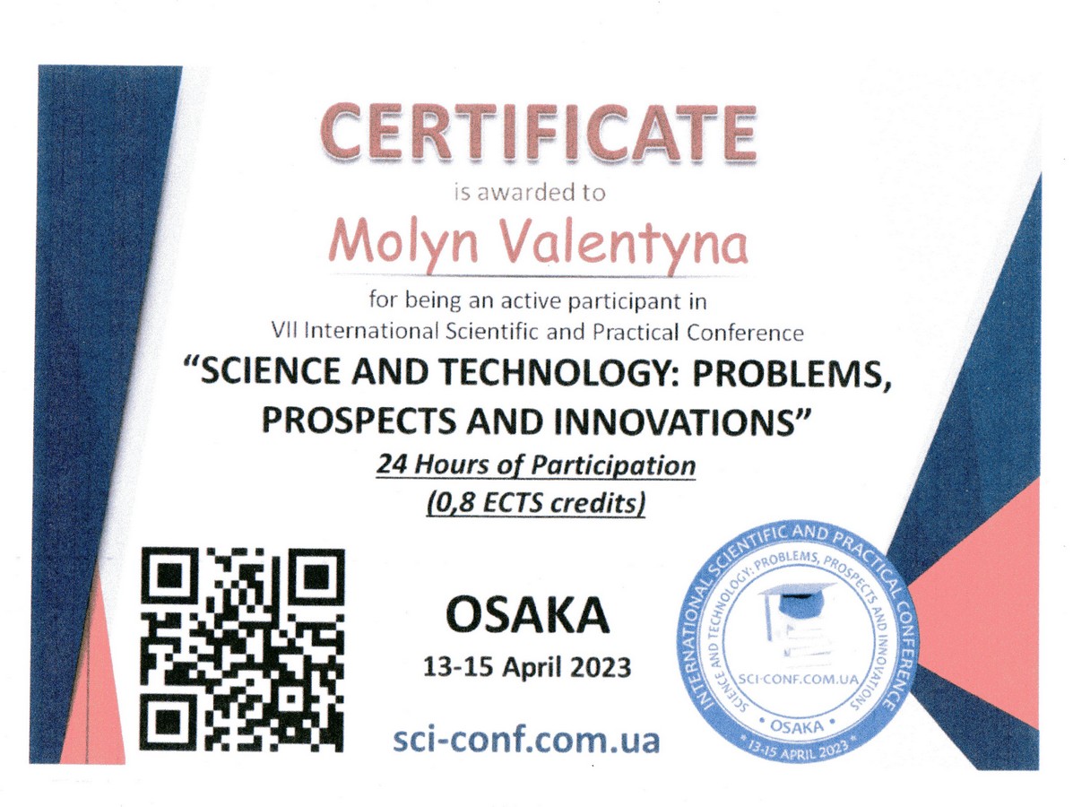 VII Міжнародна науково-практична конференція SCIENCE AND TECHNOLOGY: PROBLEMS, PROSPECTS AND INNOVATIONS