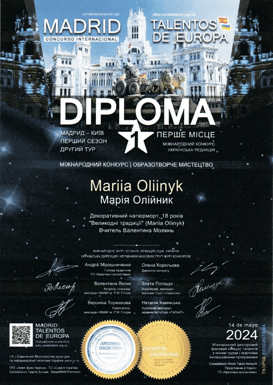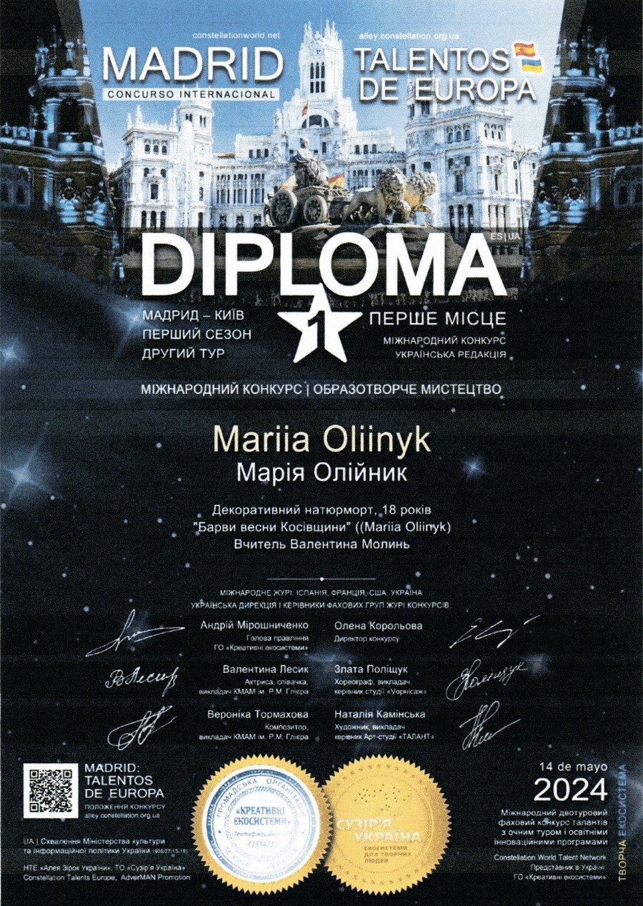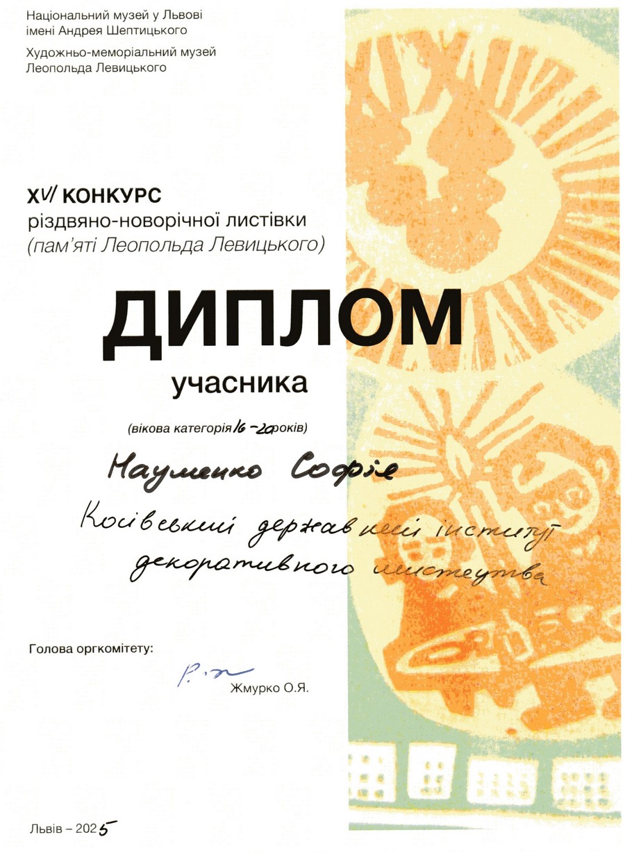 Академія образотворчого мистецтва імені Владислава Стшемінського в Лодзі (Польща). Довідка від 24.10.2019 р. Тема стажування «Професійний розвиток, удосконалення і набуття нових компетентностей у межах професійної діяльності в галузі освіти, культури та мистецтва».