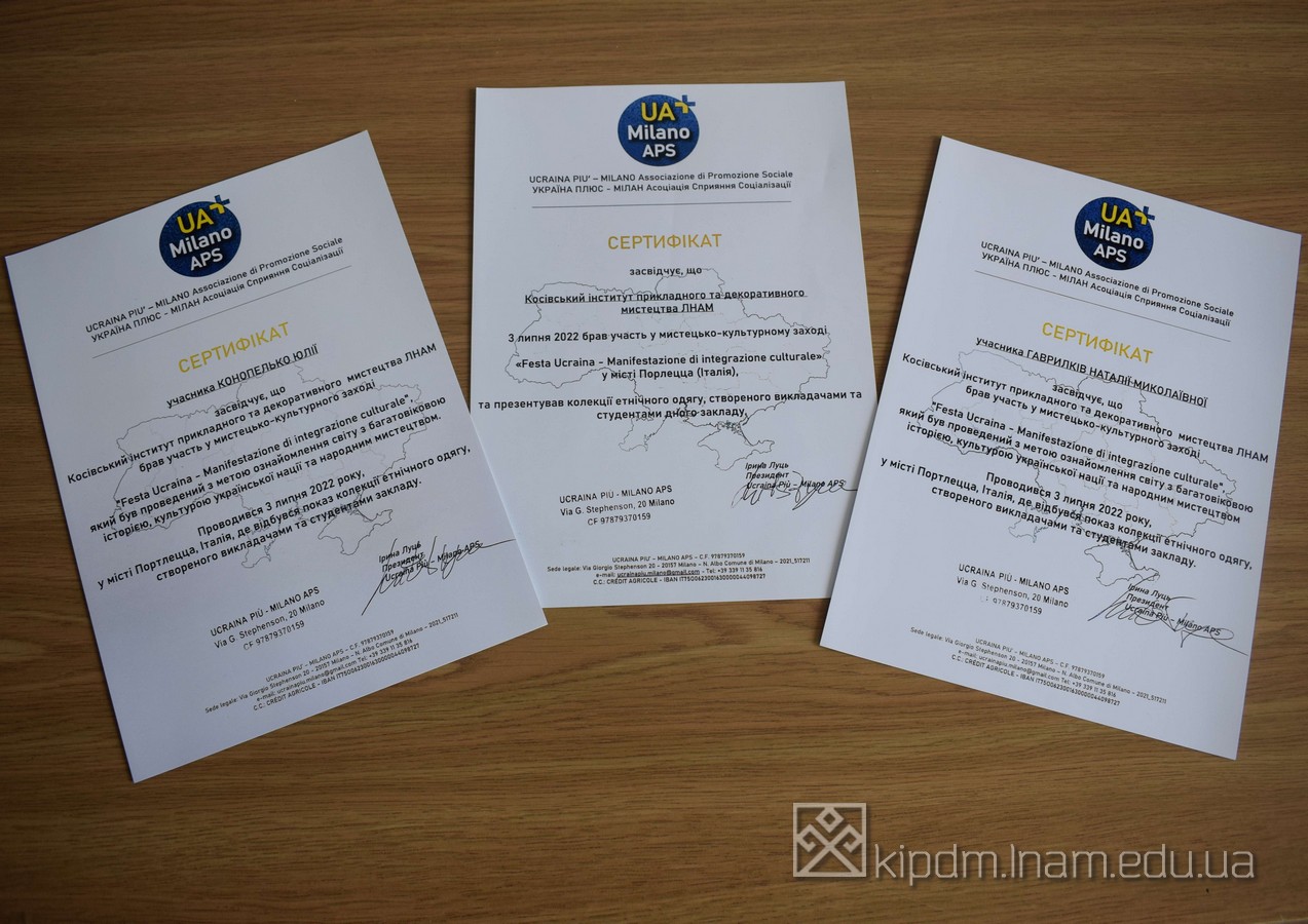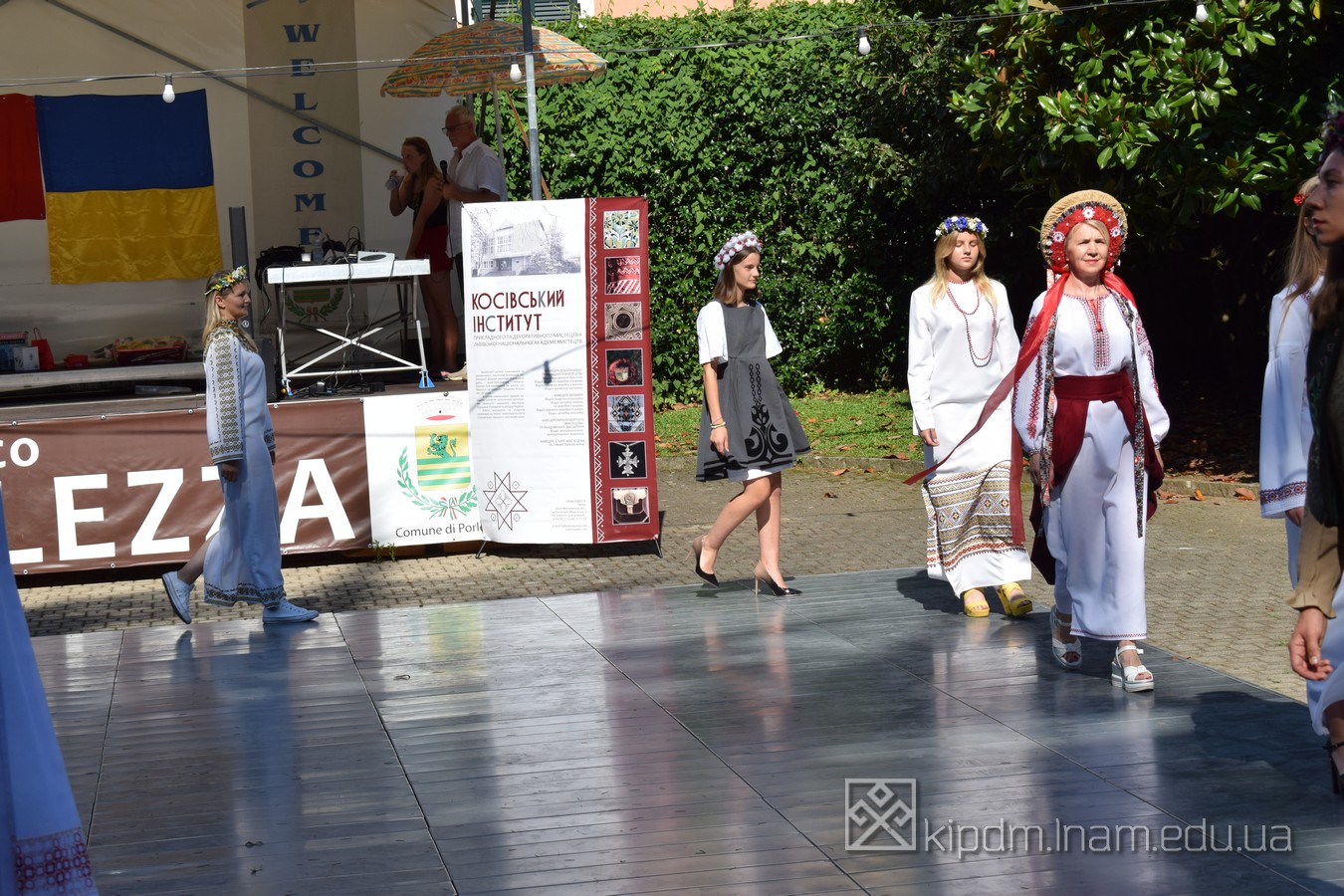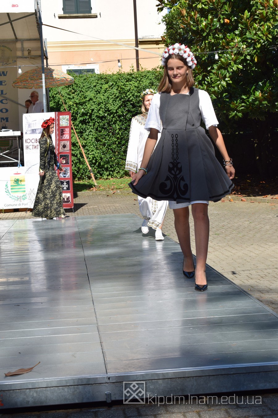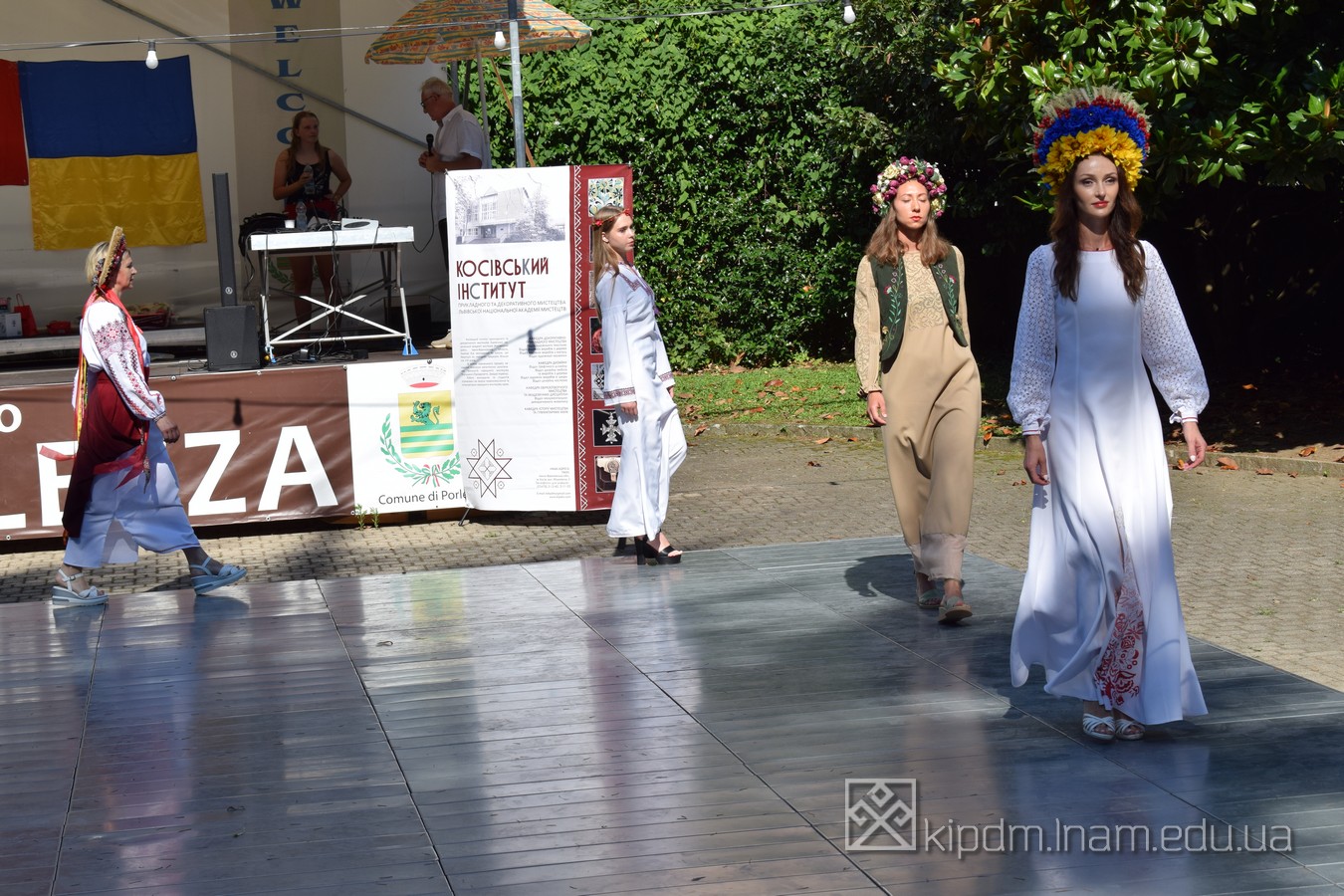 Могутнім джерелом у мистецтві костюма є прагнення людини жити у злагоді з природою, духовними та естетичними ідеалами, передавати традиції від покоління до покоління. Косівська мистецька школа гідно представила сучасний український дизайн одягу з елементами традиційних мотивів у рамках культурно мистецького заходу "Testa Ukraina - Manifestazione di integrazione cultural", який був проведений з метою ознайомлення світу з багатовіковою історією, культурою української нації та народним мистецтвом у місті Портлецца, Італія. До уваги відвідувачів фестивалю було продемонстровано показ колекції етнічного одягу, створеного молодими талантами нашого закладу. Рукотворність та авторське відчуття стилю, цікава гра мотивів та дизайнерських форм крою, гармонійне наповнення орнаменту в поєднанні з кольором, текстурою, фактурою природніх матеріалів засвідчили віддану працю педагогів та студентів мистецької школи, вразили вимогливий світ італійської моди. Було представлено роботи з фонду Косівського фахового коледжу та Косівського інституту прикладного та декоративного мистецтва, які були відзначені дипломами.